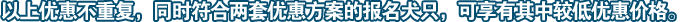 根据以上8项赛事的设立模式,每只犬均有报名参加两场赛事的机会(CKU本部展和FCI亚洲展),同时也就获得了两次挑战“国际冠军犬CACIB”和两次“国内冠军犬CAC”的机会。