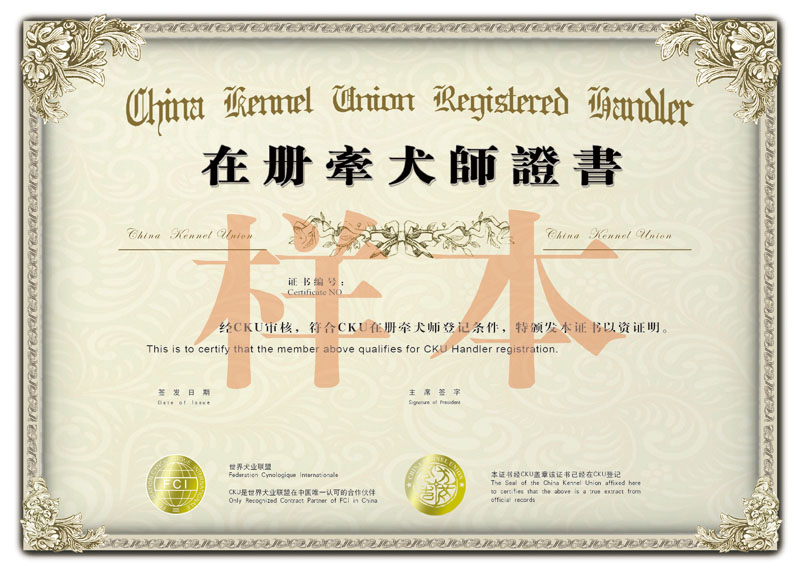 在册牵犬师证书